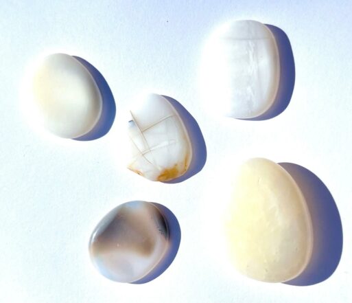 Tu peux les porter en collier au niveau du chakra correspondant ou dans les poches pour les pierres liées aux chakras inférieurs.