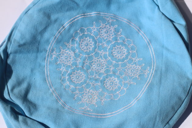 Zafu bleu ciel fleuri